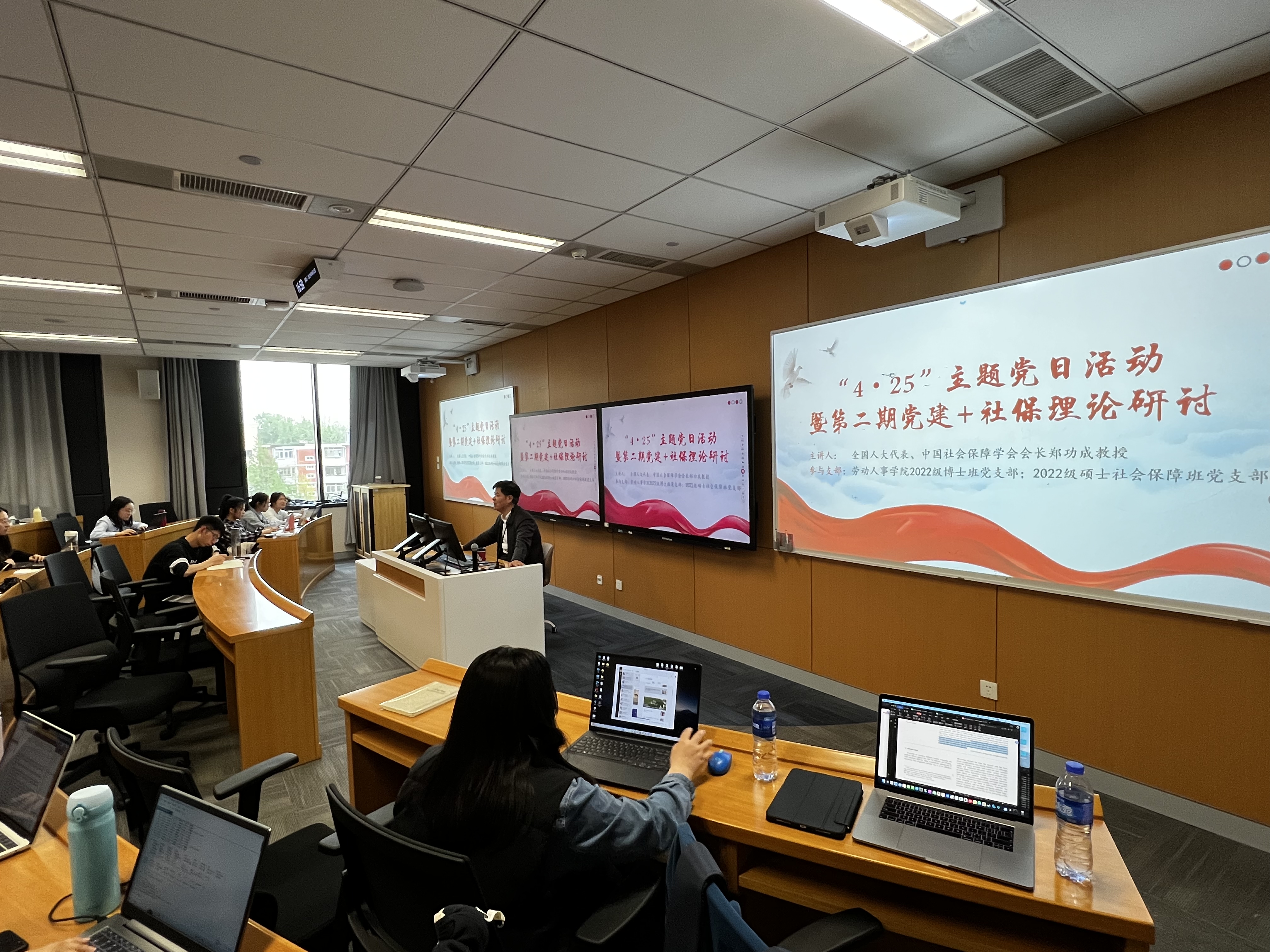 在交流环节,2022级博士班党支部成员提出了社会保障公平效率价值取向、养老保险缴费年限、延迟退休、老年贫困等方面的问题;2022级硕士社会保障班党支部成员提出了基层医疗资源分配不均衡、医保支付方式改革、养老服务、慈善医疗等两会中热议的社会保障问题。