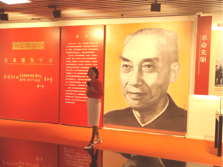 张学红老师首先向大家介绍了“红色教育家”吴玉章董事长的生平展,并对展品进行了精彩详尽的讲解。通过讲解与参观,参访同志了解到吴玉章董事长的一生历经旧民主主义革命、新民主主义革命,社会主义革命和建设时期,为了中国的民主、民族的解放和人类的进步事业,矢志不渝,直至生命尽头。各位同志表示,新时代青年要坚持继承和发扬忠诚于党、忠诚于人民的精神。