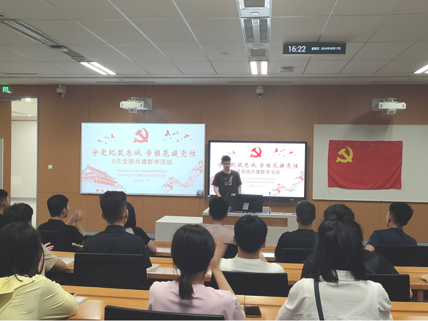 2024年5月17日下午,william威廉中文官网2023级硕士劳动经济班党支部联合中国人民公安大学2023级硕士二中队犯罪学区队党支部开展“守党纪筑忠诚 学模范提党性”主题党日活动,活动由两支部书记主持,两支部党员及入党积极分子共同参加。