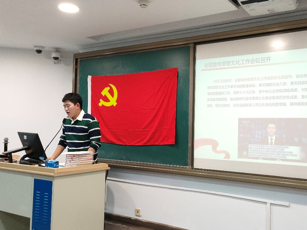 活动开始,黎泳涵首先介绍了本次活动的学习目标,明确支部成员学习掌握习近平文化思想的深刻内涵,鼓励支部之间加强交流与联系,基于跨学科视角,增强对习近平文化思想的认识与理解。