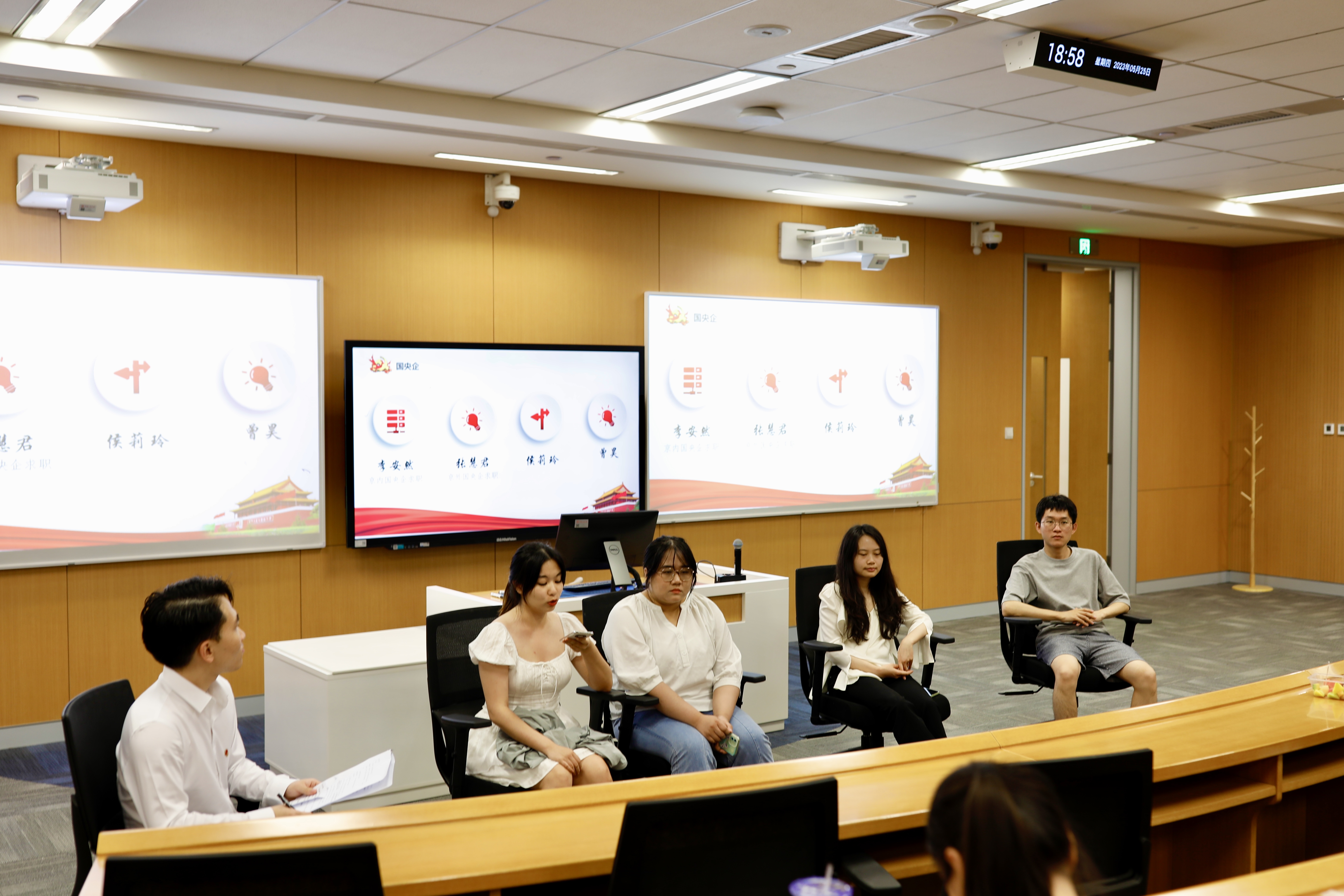 李安然、张慧君、侯莉玲及曾昊为有就业意向的同学分享经验。四位同志首先从选择优先度的角度给出了建议,如工作强度、工作地点、福利待遇等。李安然和张慧君二位同志着重剖析了有关求职关键节点、信息来源等关键问题,侯莉玲还分享了顶尖券商的暑期实习经验,为即将参与暑期实习和秋招的同学指点迷津。