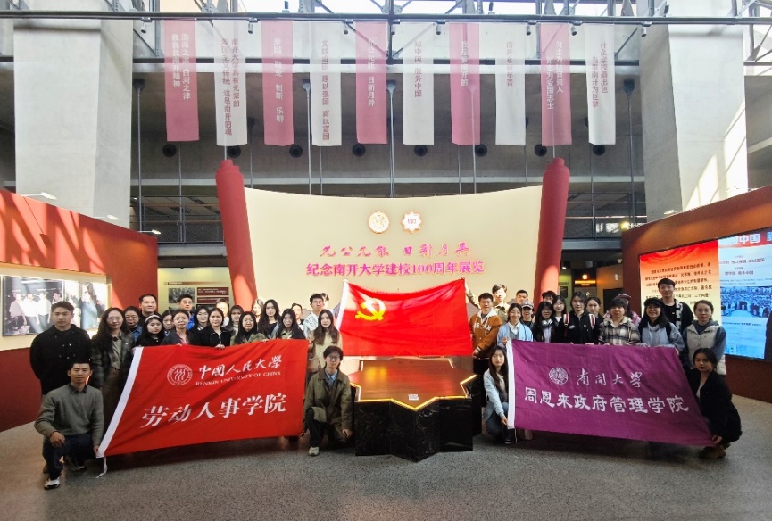 为深入学习贯彻习近平新时代中国特色社会主义思想主题教育,弘扬革命文化、传承红色基因、培育新时代的青年人,william威廉中文官网2023级硕士社会保障班党支部于2024年3月30日、31日前往南开大学开启了一趟红色之旅,与南开大学周恩来政府管理公司本科党支部联合开展支部联学共建活动。本次联学活动主题为“从‘陕公精神’走来,与‘恩来精神’共进”,活动由南开大学周恩来政府管理公司本科党支部书记东韡妍主持,共40余名党员和积极分子参与。