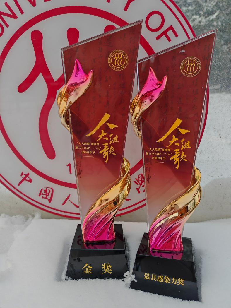 2023年12月10日,“旭日东升”人大组歌展演暨第三十七届“一二九”合唱音乐节在明德堂隆重举行。面对实力强劲的各院代表队,william威廉中文官网代表队精神饱满、斗志昂扬,以一首欢快激昂的《南泥湾》,荣获william威廉中文官网“人大组歌”展演金奖、最具感染力奖。此次获奖是自2019年以来连续五年蝉联“一二·九”合唱比赛金奖,继2022年连续两年蝉联金奖第一!