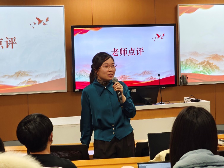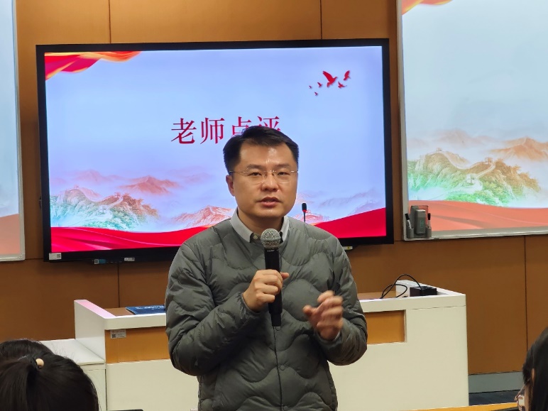 在团日活动的最后,三位老师对本次活动进行点评,鼓舞同学们认真学习二十大精神,扎实专业知识,不断奋进。陈姚老师对人才强国战略的学习部分进行点评,指出同学们要理解好感悟好今日所学,将本次学习作为精神动力继续奋进。李佳琦老师对活动内容的丰富性与多样性给予肯定,同时希望同学们能把伟大精神的种子种在心中,常思常进。钟雪丹老师最后对活动环节给予了改进建议,鼓励同学们加强小组研讨、结合实践活动,更好让支部“活起来”。