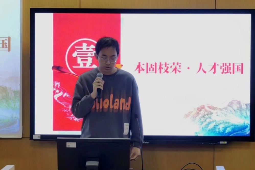活动开始,李翔同学首先介绍了本次主题团日的活动主题与学习内容,并对国家与人才的关系进行简单阐释。接下来,活动进入第一环节,政策学习指引。