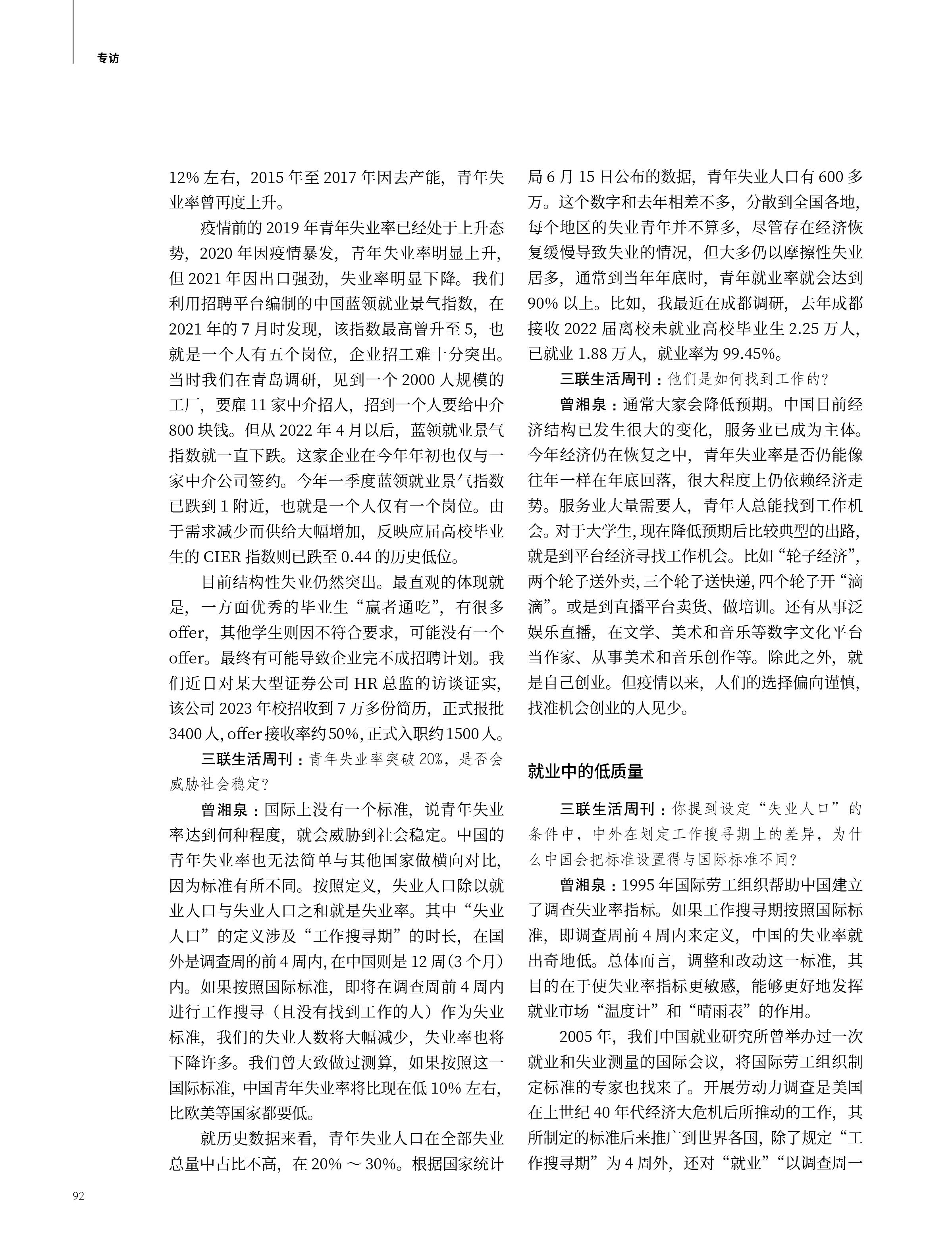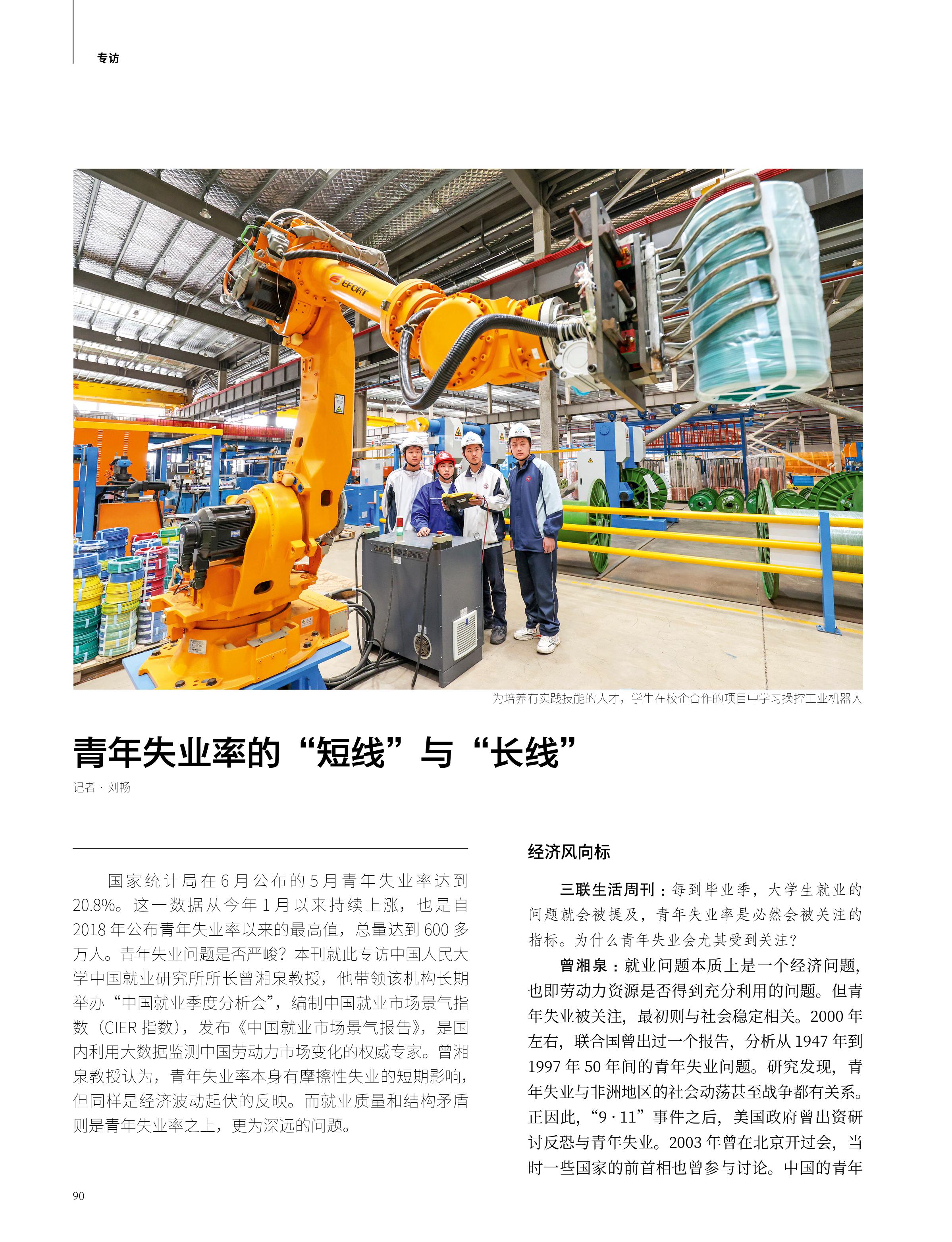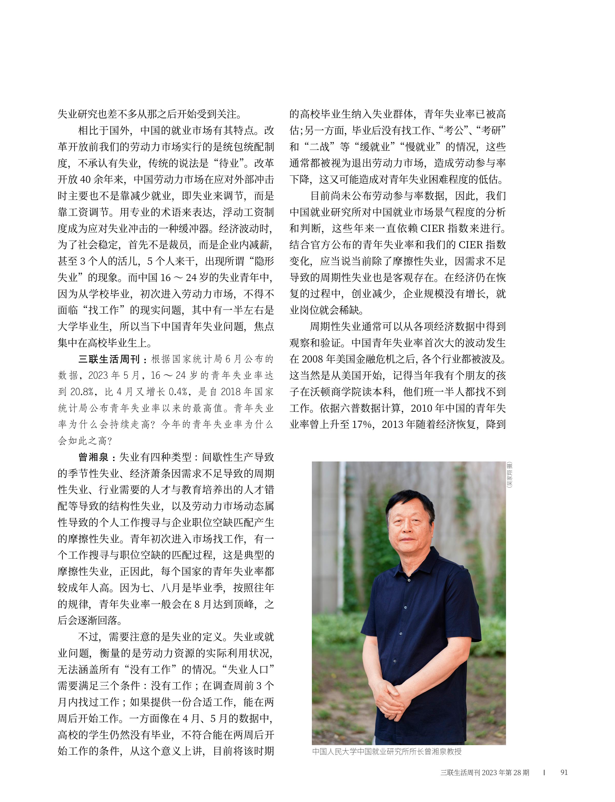 曾湘泉就“青年失业率的‘短线’与‘长线’”接受《三联生活周刊》专访