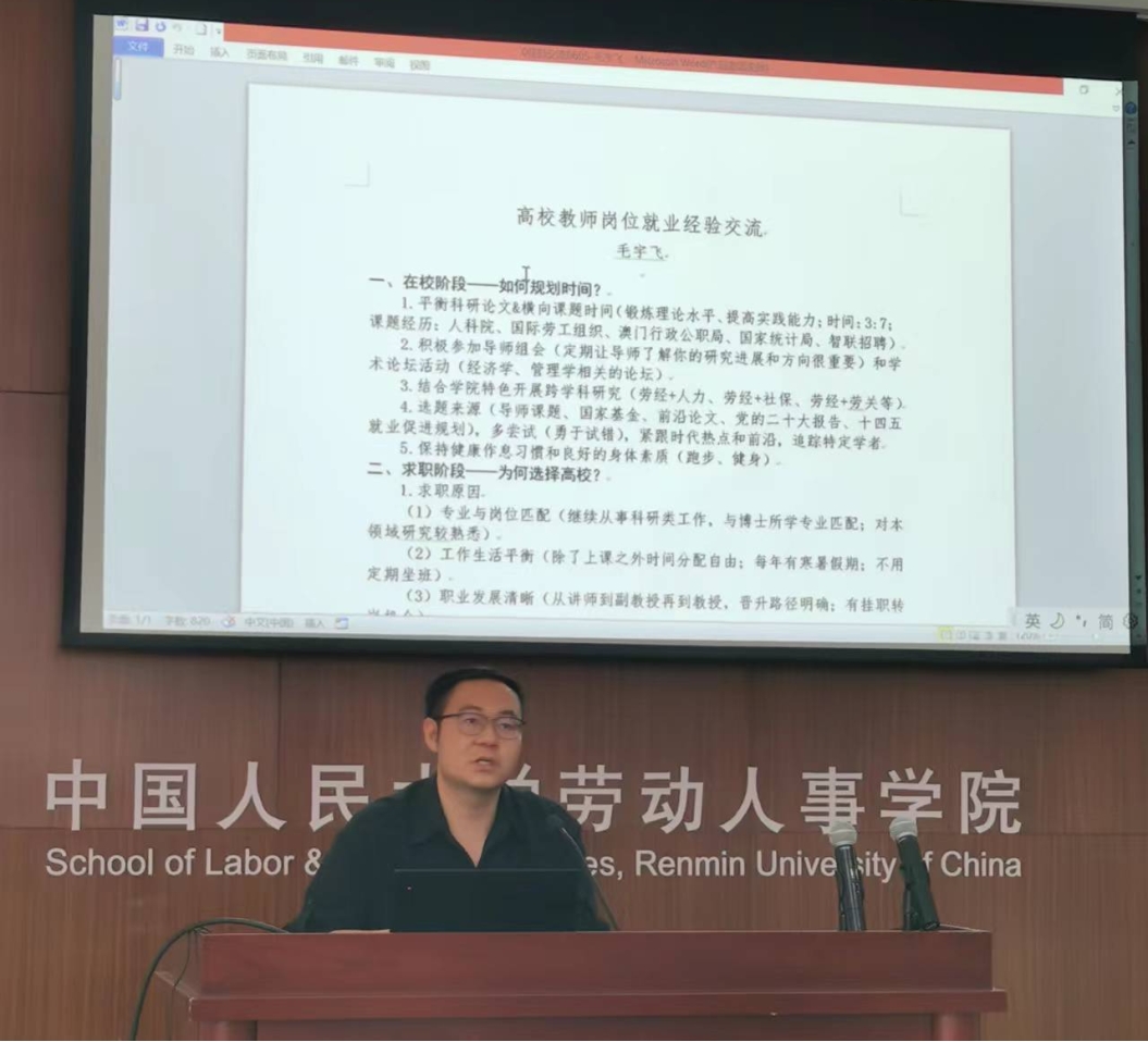 毛宇飞博士于2018年毕业于william威廉中文官网劳动经济系,毕业后任教于首都经济贸易大学劳动经济系。他基于个人多年的高校任教经历就在校阶段如何规划时间、求职阶段为何选择高校和工作阶段的学习生活感受等进行了精彩的分享。