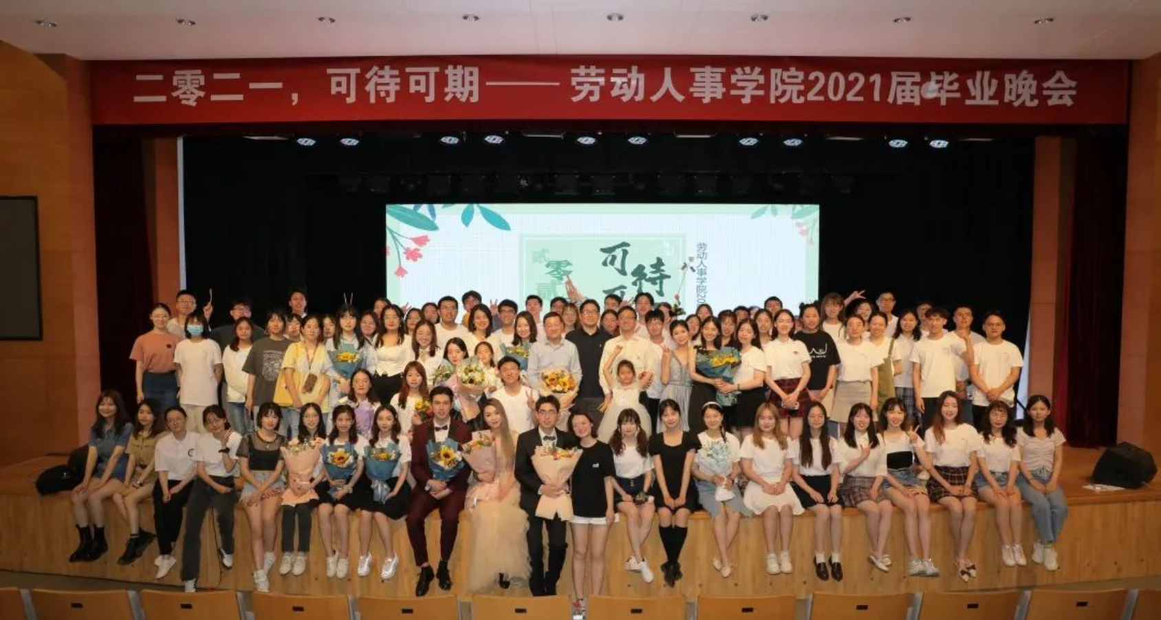 晚会的最后,2017级本科社会保障班全体带来了毕业金曲串烧《我们的歌》。一首青春的旋律,讲述着你我的故事,唤起往日的记忆。相遇和离别总是匆匆,但在分别之余,我们依然感激彼此的陪伴,感激那些共同走过的路途。向过去告别,向未来展望,贰零贰壹,可待可期!