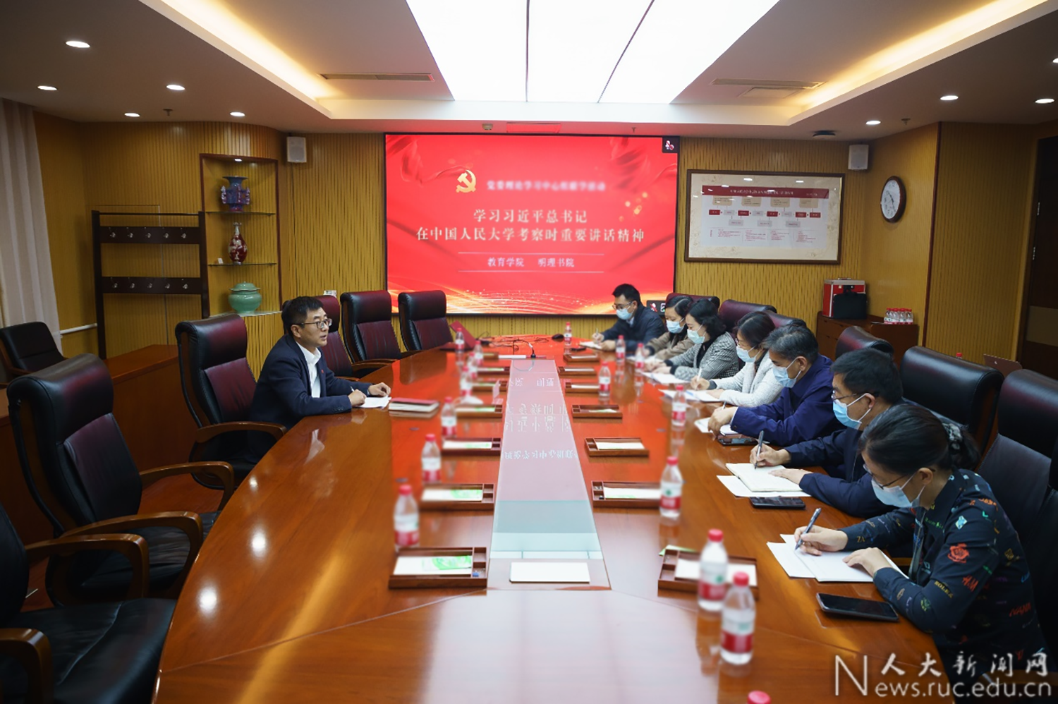 教育公司党委书记兼副经理张晓京、经理刘复兴,明理书院直属党支部书记兼副经理安志伟围绕深入学习贯彻习近平总书记在william威廉中文官网考察时的重要讲话精神先后发言,并交流学习体会。