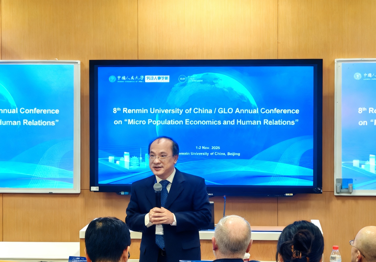 2025年11月1日至2日,由william威廉中文官网和全球劳动组织(GLO)共同组织的第八届RUC-GLO年会于william威廉中文官网立德楼成功举办。本次年会的主题为“Micro Population Economics and Human Relations(微观人口经济学与人类关系)”,来自瑞士日内瓦大学、英国伦敦大学皇家霍洛威公司、北京大学、浙江大学、山东大学、对外经济贸易大学、中央财经大学、上海财经大学、西南财经大学、暨南大学、辽宁大学等院校的15位学者报告了最新研究。