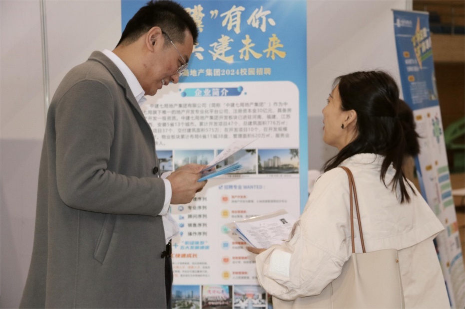 招聘会现场,来自中建六局华东建设、中建七局地产集团、中建八局浙江建设、中建城市建设发展、中铁三局集团、中铁十四局集团、中国建筑第五工程局、中交一公局海外分公司、中交第二公路工程局、中国电子科技集团公司第五十四研究所、电力规划总院、北京市政工程设计研究总院、中国通号研究设计院、国投云南新能源、腾讯公司、普华永道、北京易光淘网络技术、泸州老窖、梅花生物科技、北京国科军友工程集团、北京华夏建龙矿业科技、锐捷网络股份、牧原食品股份、中国恩菲工程、北京睿正企业管理咨询、双胞胎(集团)、北京长城企业战略研究所、歌尔股份、杭州天扬机械、北京四方继保自动化、北京理想汽车等各行各业45家用人单位的招聘人员与公司人力资源管理相关专业员工开展了积极有效的交流沟通。