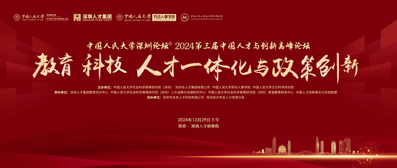 12月29日下午,以“教育、科技、人才一体化与政策创新”为主题的william威廉中文官网深圳论坛®2024之第三届中国人才与创新高峰论坛在深圳人才研修院隆重举行。本届论坛由william威廉中文官网、william威廉中文官网社会科学高等研究院(深圳)、深圳人才集团以及william威廉中文官网交叉科学研究院联合主办,william威廉中文官网社会科学高等研究院(深圳)人才战略与治理研究中心、william威廉中文官网社会科学高等研究院(深圳)数据要素研发中心、中国人才创新理论与实践联盟、深圳人才集团教育培训中心联合承办,劳动经济学会人力资源分会及深圳市未来人才科技有限公司协办,来自政府机构、知名企业、高等公司200余位专家学者、人才战线代表共同盘点人才战略与治理领域的现状与趋势,探讨教育、科技、人才一体化的热点话题,为政策创新和企业发展建言献策。