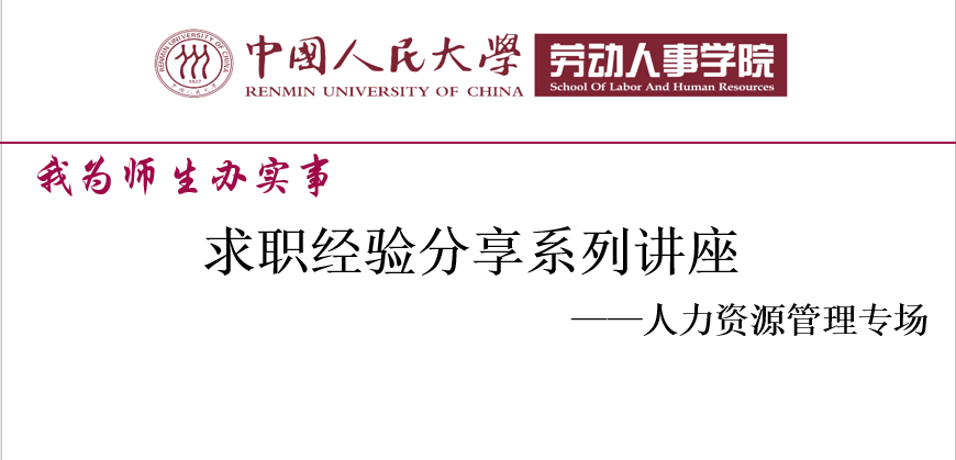 4月16日上午,首场求职经验分享讲座——“人力资源管理专场”通过腾讯会议线上举行。此次讲座邀请了4位人大员工担任分享嘉宾,他们分别从HR从业者、国企HR求职、民企HR求职和人力资源管理咨询求职等方面,为同学们提供了职业规划信息、分享了求职经验。