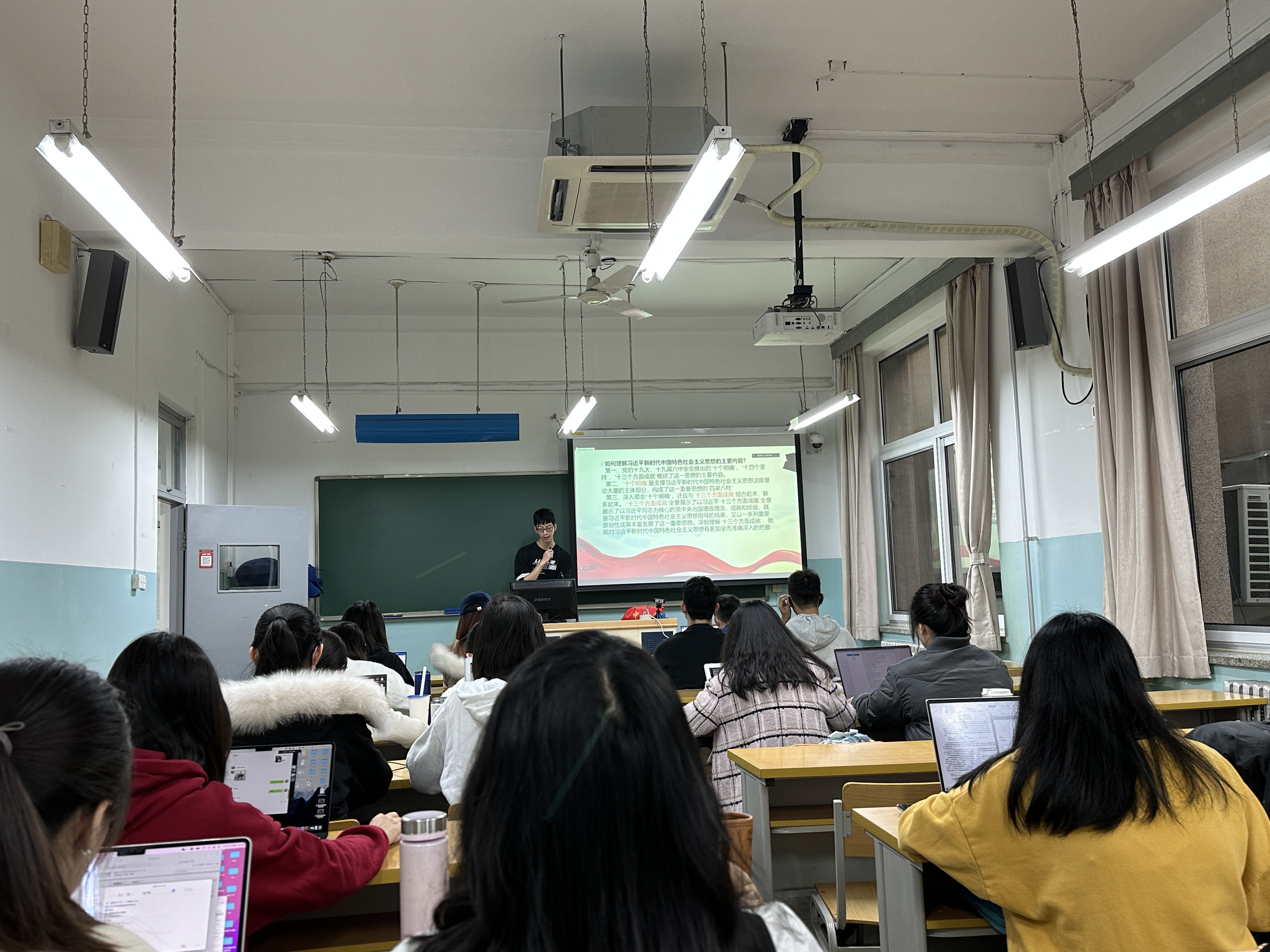 集体学习后,与会成员相互交流、分享感悟,结合专业知识和自身实际深入学习党的二十大报告。张南同志引用“老有所终、壮有所用、幼有所长,鳏寡孤独废疾者皆有所养”表示,我国建立世界上最大规模的社会保障安全网,老百姓的幸福感不断增强;张娜同志结合自己在甘肃省山区支教经历,阐述我国乡村振兴战略下农村的变化;崔梦瑶同志表示,要走进社会,洞察社会现实中的需求与困难;阿勒思同志表示,从党的十九大至党的二十大,人民安居乐业、社会安定有序,续写了社会长期稳定奇迹。随后,吴文馨同志对研讨环节进行总结,并表示作为新时代青年学子,我们要立志做有理想、敢担当、能吃苦、肯奋斗的新时代好青年。