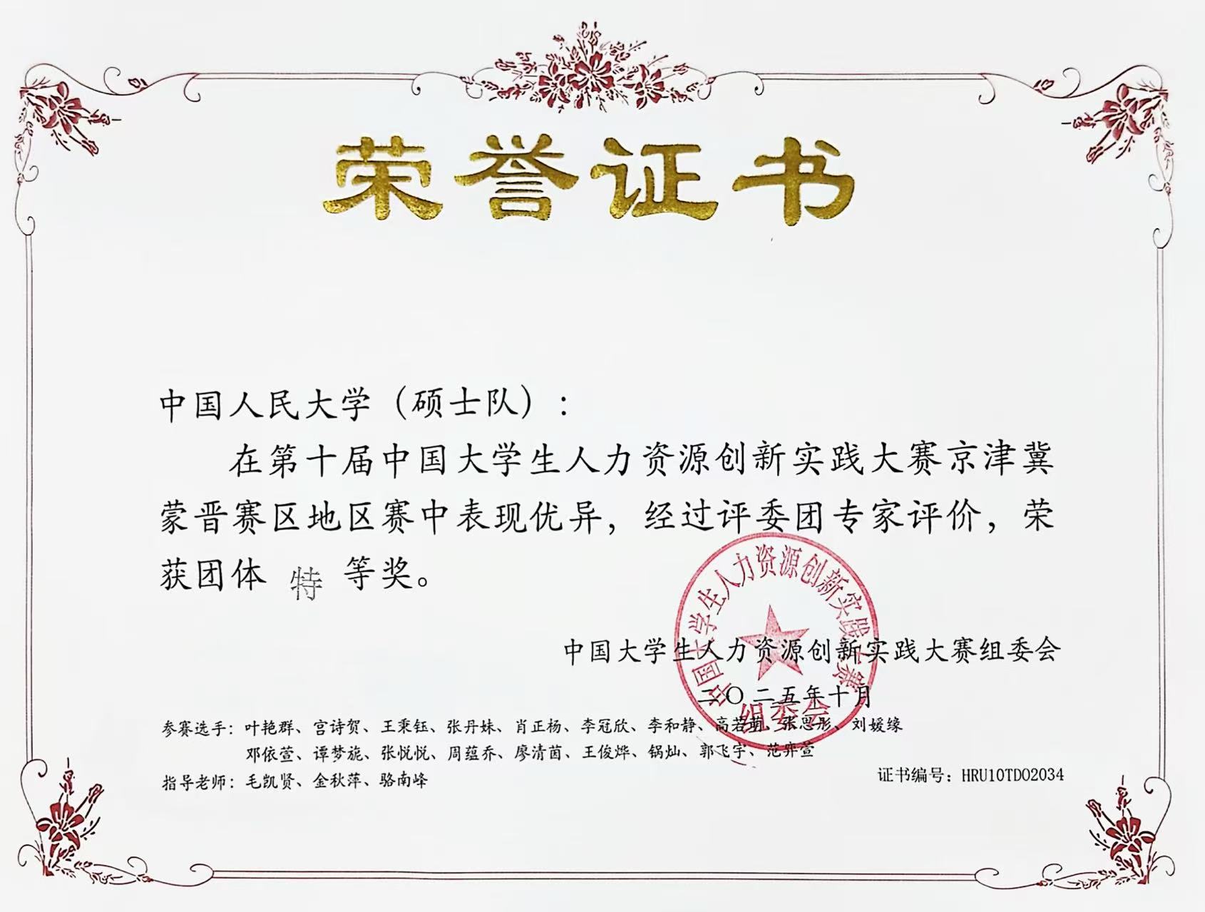 虽然所有同学均为首次参赛,但在备赛期间,同学们主动拓展学习边界,把课堂里的绩效模型改写成AI预测代码,将劳动法条文转化为仲裁庭上的攻防策略,把品牌传播理论嵌入雇主价值主张脚本,在“赛中学”中完成理论与实践的第一次贯通。此外,公司指导教师带领同学们把赛场标准转化为日常作业,实现课堂知识与行业前沿的同频共振,来自学界和业界的专家也给予同学们热情指导。在多方共同努力下,两支队伍终于在此次地区赛中取得理想成绩,同学们也以赛带学、以赛带练,获得了专业成长。
