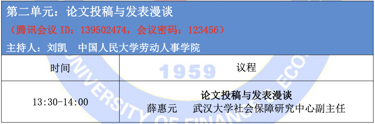 会议第二单元为论文投稿与发表漫谈,武汉大学社会保障研究中心副主任薛惠元对师生普遍关心的选题、格式、期刊选择提及投稿技巧等做了一一阐释。
