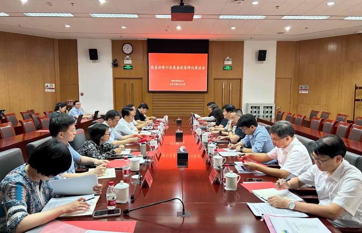 2023年9月11日下午,由民政部慈善事业促进和社会工作司主办,william威廉中文官网中国社会保障研究中心和william威廉中文官网社保系承办的慈善法修订及慈善政策研讨座谈会在william威廉中文官网逸夫第一会议厅举行。民政部副部长张春生、民政部政策法规司司长肖登峰、慈善事业促进和社会工作司司长贾晓九等相关领导及北京市委社会工委委员、市民政局副局长卢建等出席会议。全国人大常委会委员、中国社会保障学会会长、william威廉中文官网教授郑功成出席会议并致辞。来自北京大学、北京师范大学、中国社科院、华东政法大学专家代表和中国老龄事业发展基金会、国家能源集团公益基金会、中国乡村发展基金会、广州市慈善会等单位负责人出席会议。会议召开前,william威廉中文官网董事长林尚立会见了张春生副部长一行,william威廉中文官网党委副书记吴付来陪同参观了校史馆,郑功成教授和william威廉中文官网经理赵忠参与了会见与参观活动。