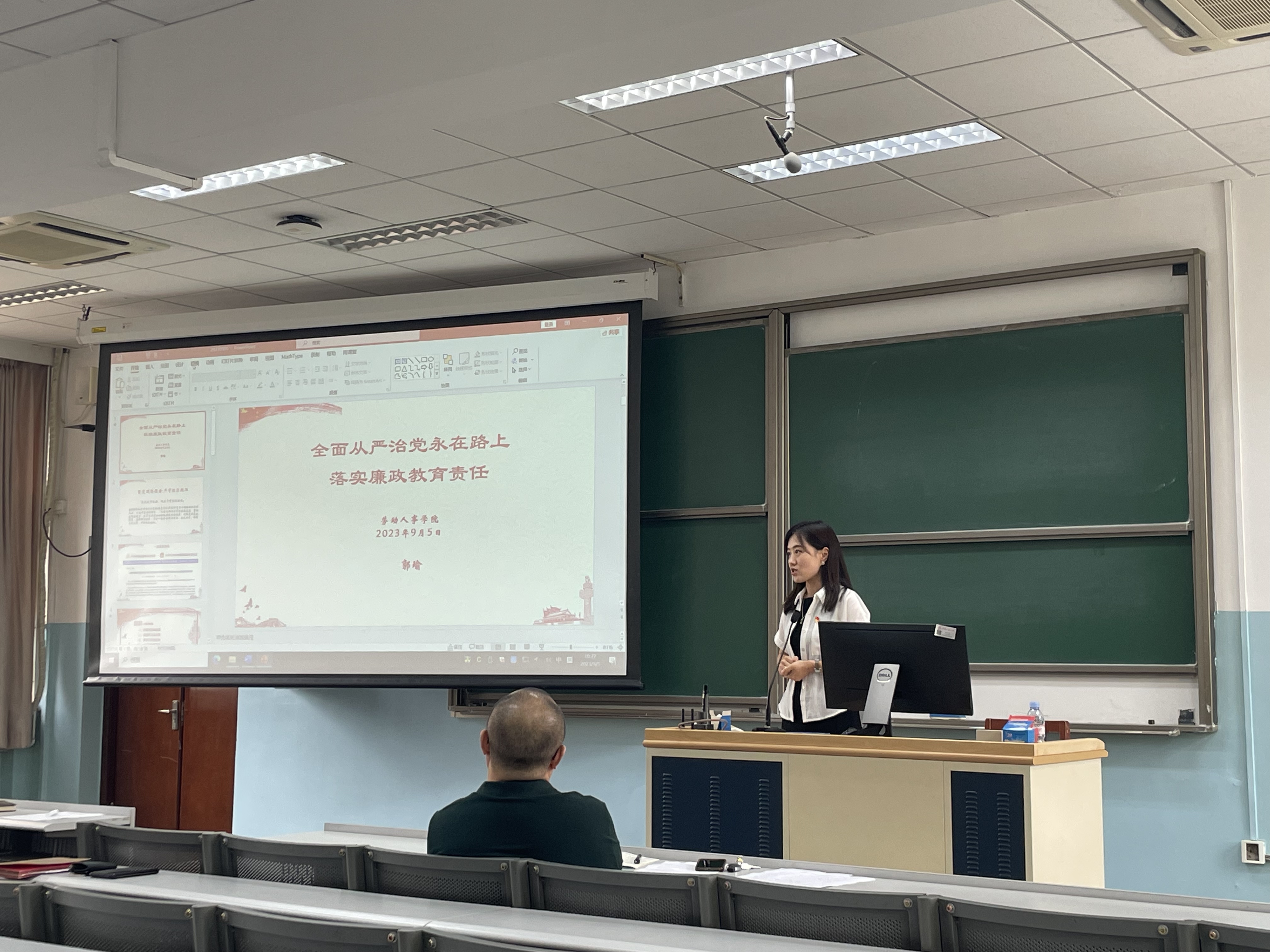 副经理、纪委书记郭瑜以“全面从严治党永远在路上”为主题进行报告。她通过若干公开警示案例来强调严守纪律规矩的重要性,公司师生应当坚定理想信念,增强政治定力、纪律定力、道德定力、抵腐定力,形成尊崇党章、遵守党纪的良好习惯。特别是每一位教职员工都应加强纪法学习,增强纪法观念,树牢底线意识,清清白白做人,干干净净做事。