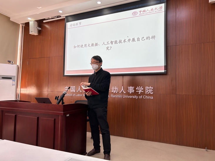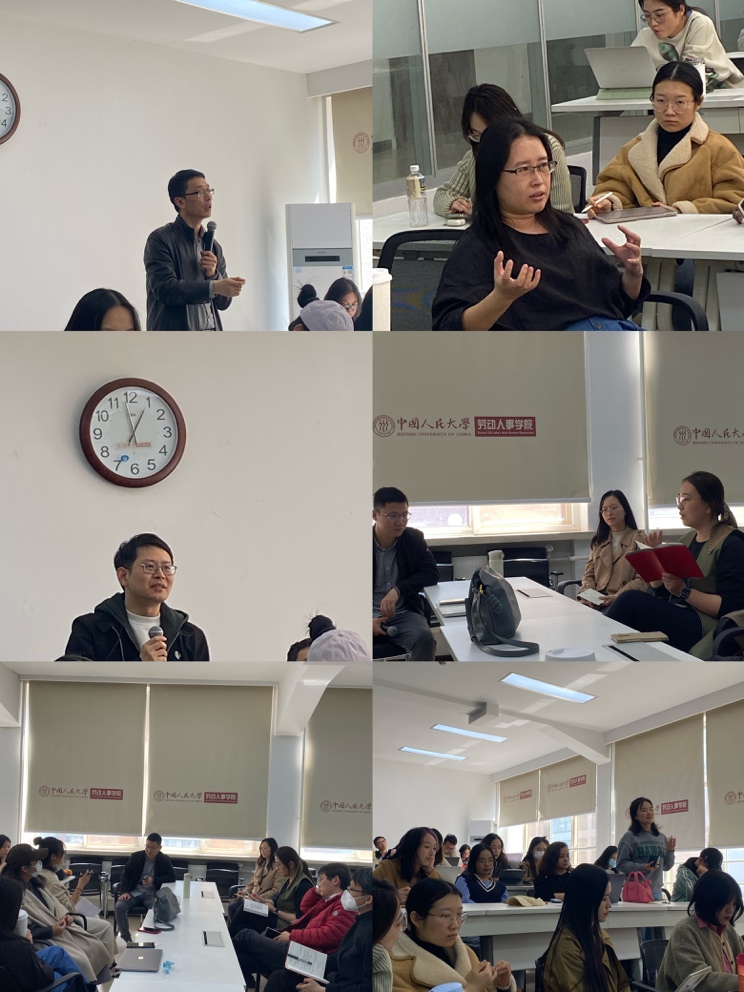 徐世勇教授从大数据方法角度提出了点评:大数据是否能真正解决传统方法带来的因果推断问题?企业公司数据、政府数据等是否属于大数据?舆情的归类需要提前预设吗?骆南峰副教授主要从求职学术试讲方面给予了评价。刘松博教授、赵锴副教授、冯雯助理教授、陈雯助理教授、李海蓉助理教授、陈力凡助理教授等先后就大数据方法在人力资源管理研究中的应用进行了精彩点评。
