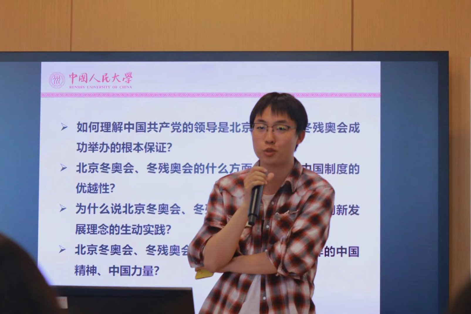 支部党员张馨月同志针对冬奥中的“中国精神”总结道:北京冬奥会、冬残奥会的举办体现了自强不息、团结奋进、敢于担当的民族精神,面对百年前的“奥运三问”,今日之中国,交出了完美的“双奥”答卷。