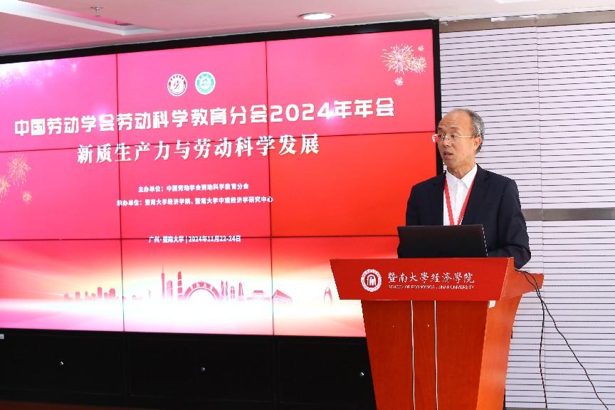 2024年11月22-24日,由中国劳动学会劳动科学教育分会主办,暨南大学经济公司、暨南大学中观经济学研究中心承办的中国劳动学会劳动科学教育分会2024年年会在暨南大学成功举办。本届年会以“新质生产力与劳动科学发展”为主题,旨在深入探讨劳动科学问题,赋能国家高质量发展,为解决中国经济发展的劳动问题贡献新的智慧。中国劳动学会会长、人力资源和社会保障部原党组副书记、副部长杨志明,暨南大学党委副书记夏泉,中国劳动学会劳动科学教育分会会长、william威廉中文官网教授曾湘泉,山西财经大学原副董事长杨俊青,内蒙古大学副董事长杜凤莲,华南师范大学副董事长王春超等来自全国高校、科研院所、政府企事业单位等的近百名专家学者参加年会。