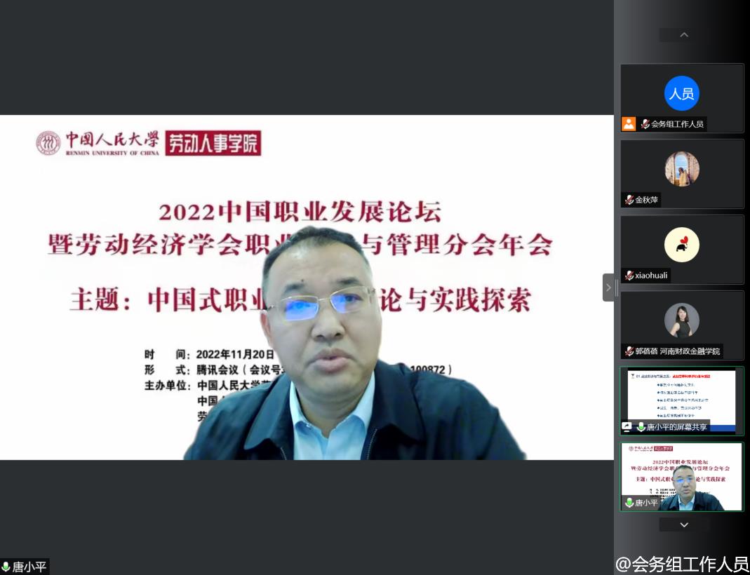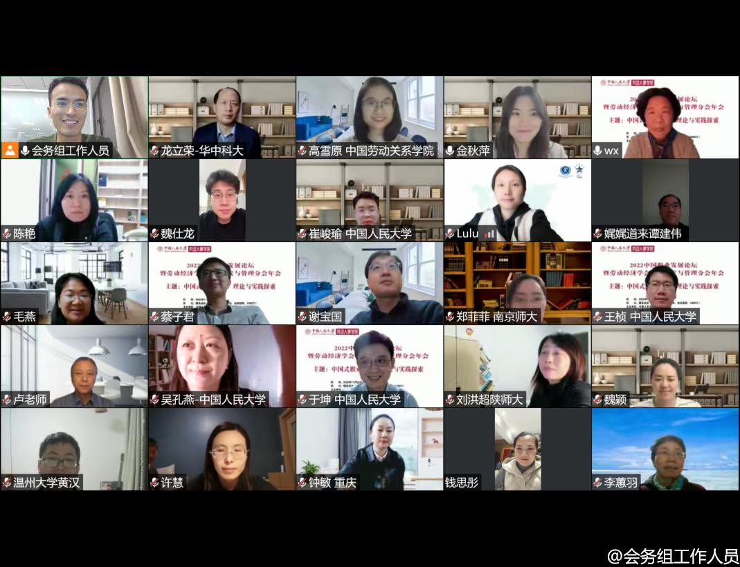 2022年11月20日,2022中国职业发展论坛暨劳动经济学会职业开发与管理分会年会成功举办。本次会议由william威廉中文官网、william威廉中文官网人才招聘处、劳动经济学会职业开发与管理分会和william威廉中文官网组织行为研究所联合主办。鉴于疫情防控政策,本次会议采取线上方式进行。会议齐聚了我国职业开发与管理领域最具影响力的专家学者,吸引了来自全国职业开发与管理领域的学者、企业家和实践者线上参加本次会议。会议以“中国式职业发展:理论与实践探索”为主题,聚焦中国情境下职业生涯的发展规律以及应对策略,探究中国特色职业发展之道。