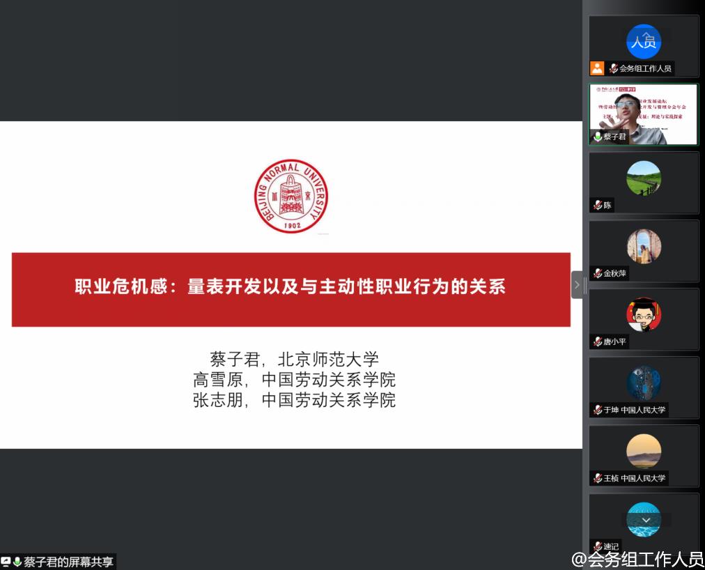 北京师范大学经济与工商管理公司助理教授蔡子君做题为“职业危机感:量表开发以及与主动性职业行为的关系”的主题演讲。蔡子君老师首先分析了我国员工职业危机感的现状,随后介绍了职业危机感量表的开发过程和结果,并在此基础上探求职业危机感和职业主动性关系,并提出应对职业危机感的思路。