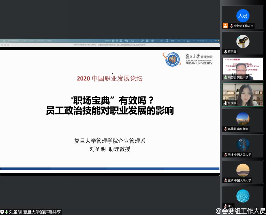 复旦大学管理公司助理教授刘圣明作题为“‘职场宝典’有效吗?员工政治技能对职业发展的影响”的主题演讲。刘圣明老师首先以各种生动的故事和学术研究对职场宝典——政治技能的概念及有效性进行阐释。其次,刘圣明老师分享了自己关于政治技能的研究,并详细分析领导的政治技能和员工政治技能的交互影响并对未来的研究方向进行简要介绍。