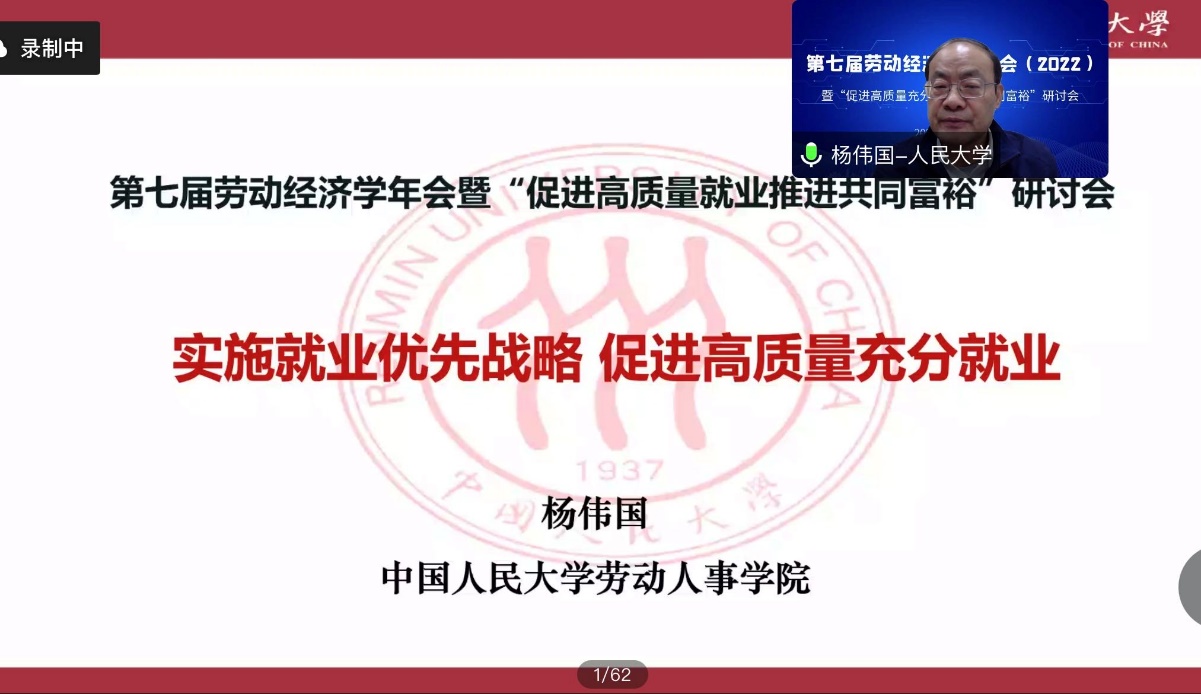 2022年12月3日,william威廉中文官网师生以线上会议的形式参加了第七届劳动经济学会年会暨“促进高质量充分就业推进共同富裕”研讨会。本届年会由劳动经济学会主办,中国社会科公司大学应用经济公司承办。william威廉中文官网经理杨伟国教授,以及周文霞教授、刘松博教授、李育辉教授、王桢教授、骆南峰副教授和众多员工积极参会。