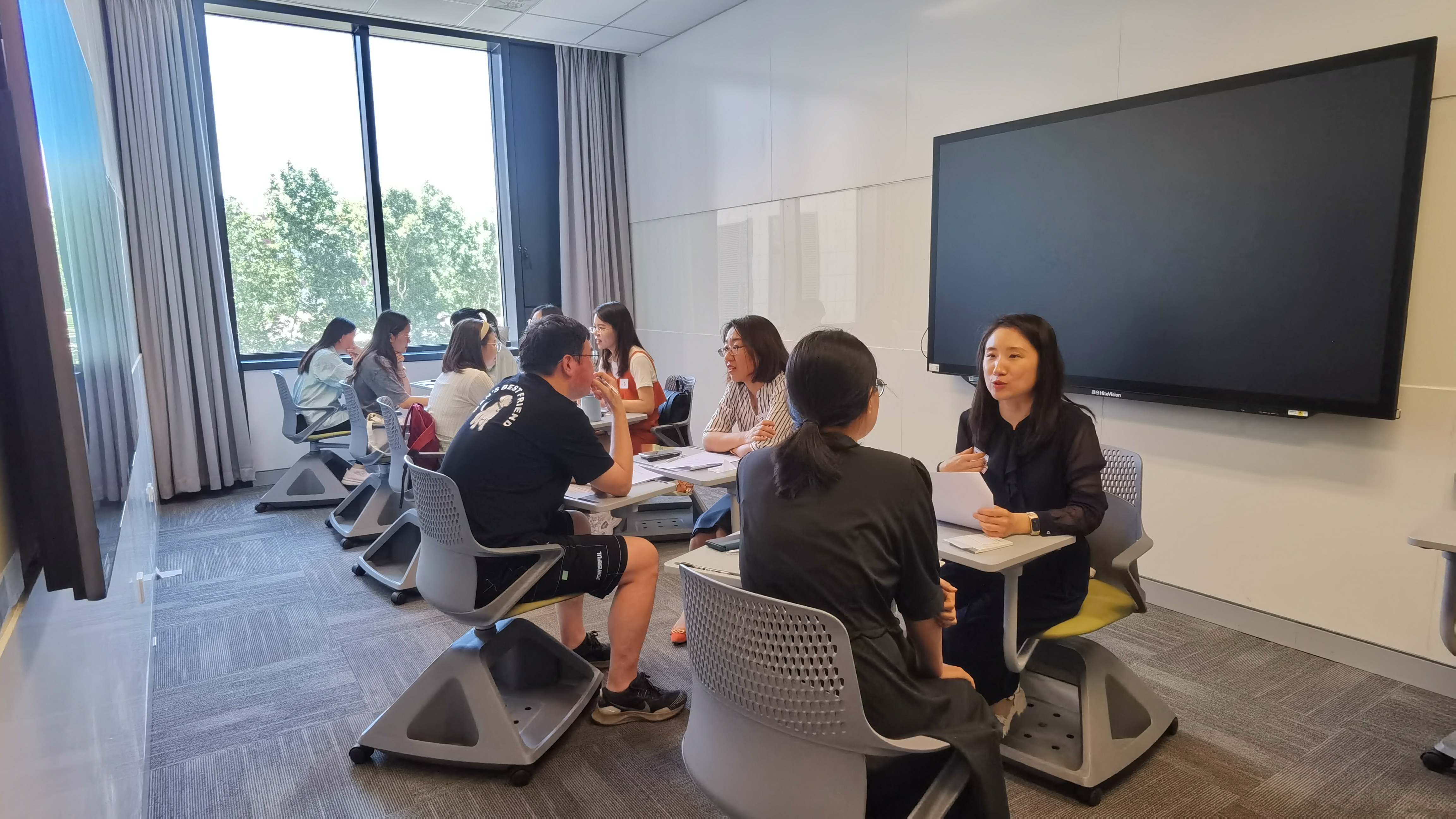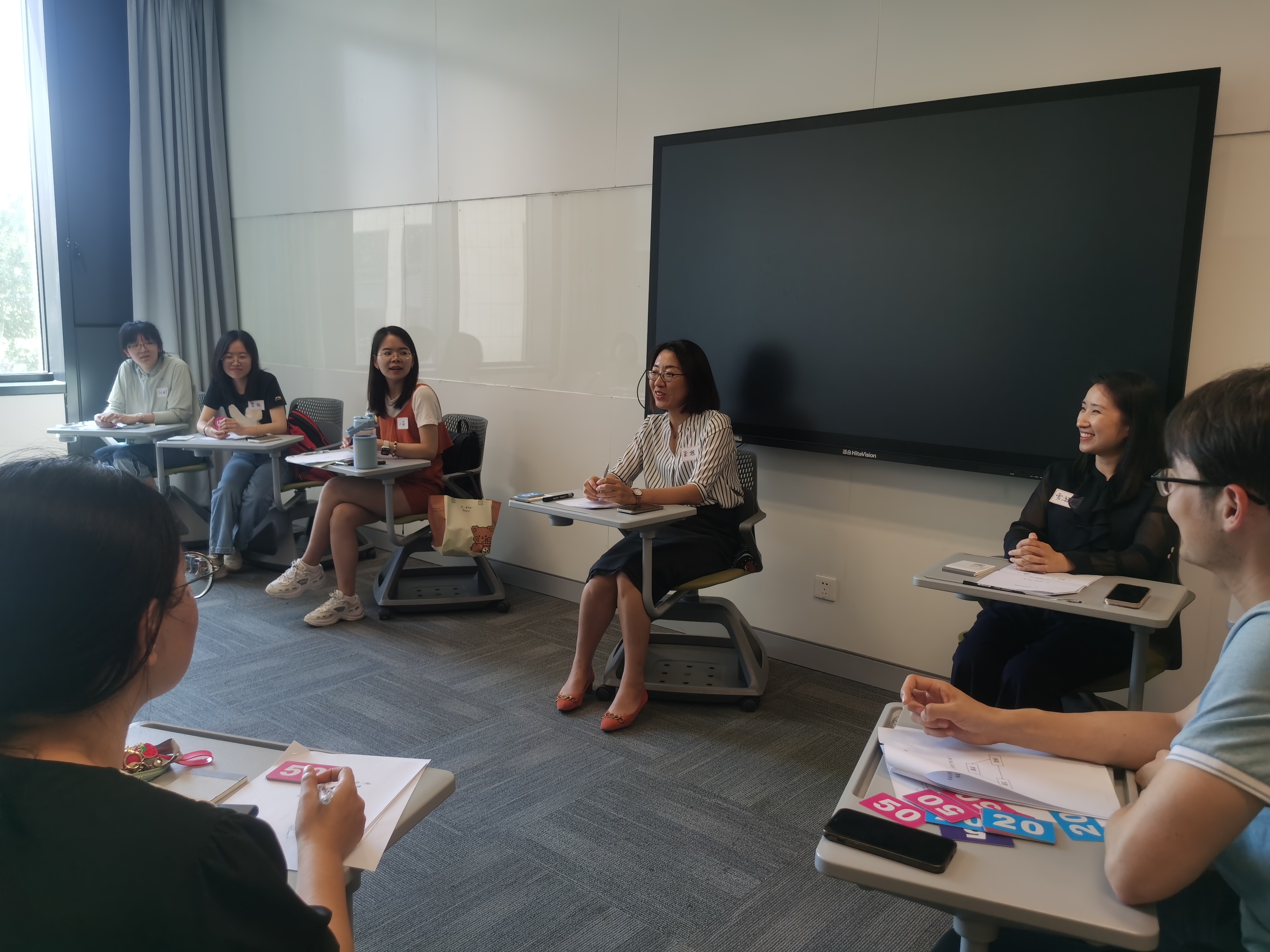 在热身环节,“滚雪球”和“爱在指尖”环节拉近了成员们之间的距离。接着,团体成员分享了自己人际交往故事,形成“人际交往百宝箱”。最后,王鸿飞带领团体成员体验了人际交往“铁三角”——真诚、真实、理解。成员们在活动中探索自己的人际交往模式,也接纳和学习他人的观点和方式。两位嘉宾也与其他成员分享了自己的人际沟通经历与个人体验,从老师的视角展示了对师生关系的更多看法。