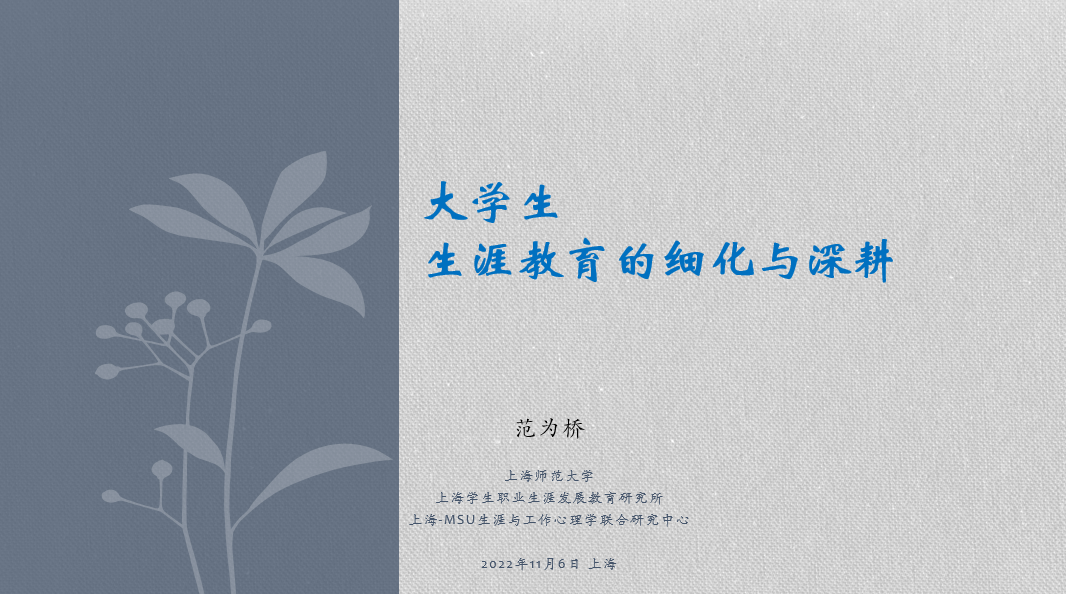 范为桥教授的报告主题为“老员工涯教育的细化与深耕”。范为桥老师首先对老员工涯教育的现状进行介绍,指出目前我国老员工涯教育课程体系基本形成,团队队伍初步具备,实践咨询积极开展。但是生涯教育也面临着问题和挑战,需要加强教学效果、咨询实践和效度研究。然后范为桥老师从理论上阐述了生涯教育精细化的路径,提出要理论先行,要关注社会现象,并且要对当代老员工群体特征进行分析。接着范老师分享了他开展的四个老员工职业发展调查,考察了老员工职业生涯发展、生涯活动、学习情况、身心健康、个性发展等状况,并且从性别、社会阶层和代际差异三个方面进行详细分析。最后范老师对生涯教育的未来方向进行讨论,强调了生涯教育资源投放中心需从公司层面转到员工个体层面。王桢老师就样本特征和调查结果关系、调查对于高校职业生涯课程指导意义等方面进行了讨论。