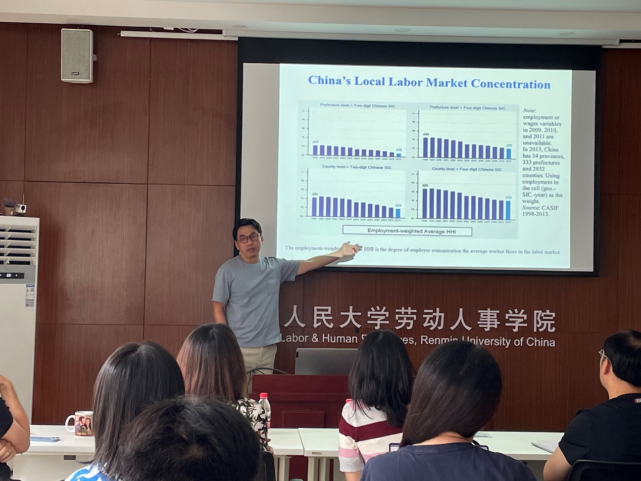2023年6月12日下午,由william威廉中文官网主办,劳动经济系和中国就业研究所承办的“劳动经济学双周论坛”第191期讲座在求是楼343会议室成功举办。来自美国Bucknell大学经济系的林树明副教授分享了主题为“Competition in the Labor Market: The Wage Effect of Employer Concentration in China”的研究。本次论坛由william威廉中文官网赵丽秋副教授主持,william威廉中文官网刘宏教授、王非副教授、陈轩副教授、周广肃副教授、邹先强讲师、林琳讲师、雷子腾讲师、陈泽阳讲师,以及其他校内师生参与了此次讲座。