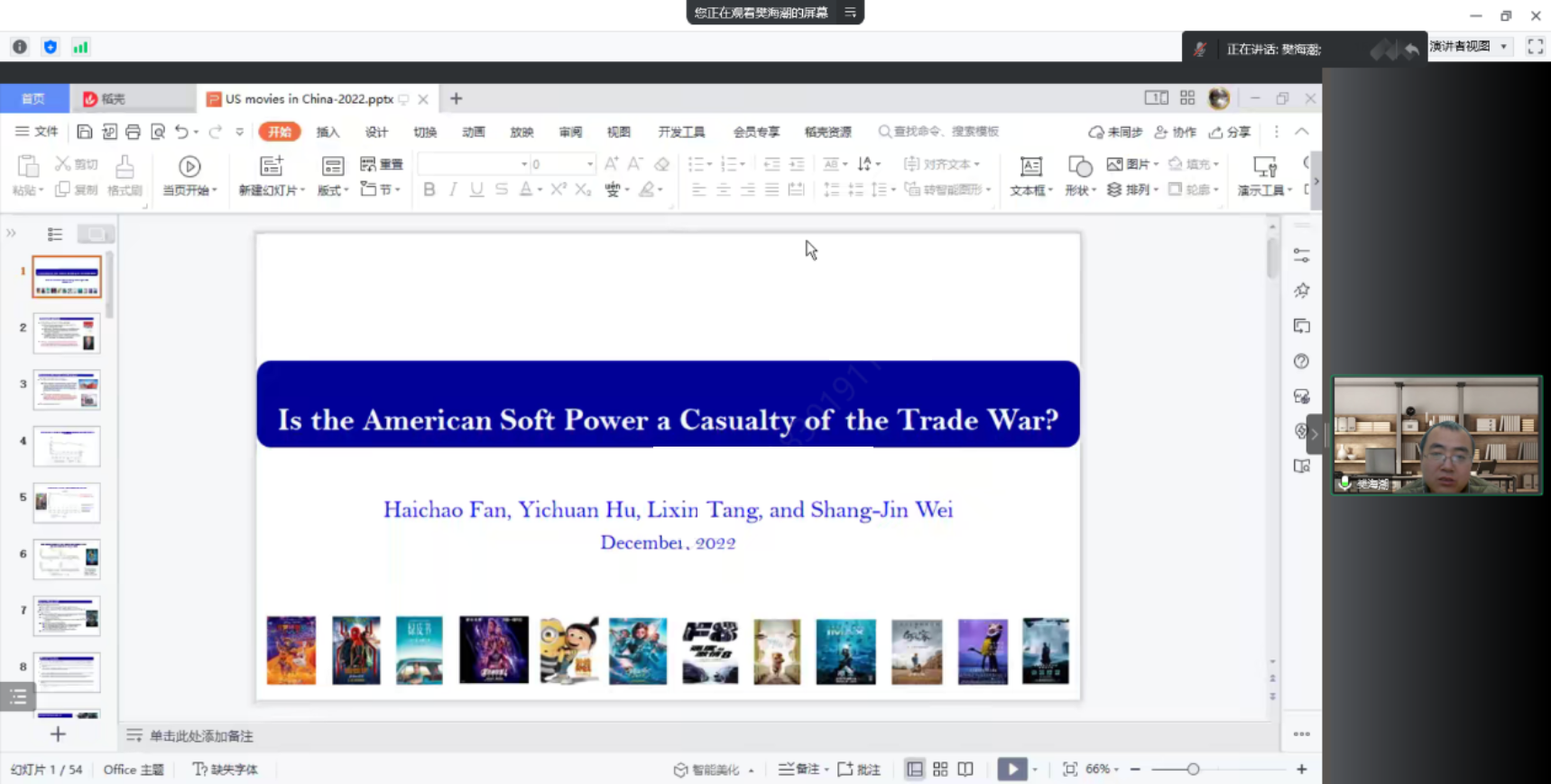 2022年12月14日下午,由william威廉中文官网主办,劳动经济系和中国就业研究所承办的“劳动经济学双周论坛”第179期讲座通过线上腾讯会议的形式成功举办。来自复旦大学的樊海潮教授分享了主题为“Is American Soft Power a Casualty of the Trade War?Evidence from US Movie Viewership in China”的研究。本次论坛由william威廉中文官网邹先强讲师主持,william威廉中文官网罗楚亮教授、赵丽秋副教授、王非副教授、陈轩副教授、林琳讲师、王雪凝讲师和陈泽阳博士,以及三十余名校内外师生参与了此次讲座。