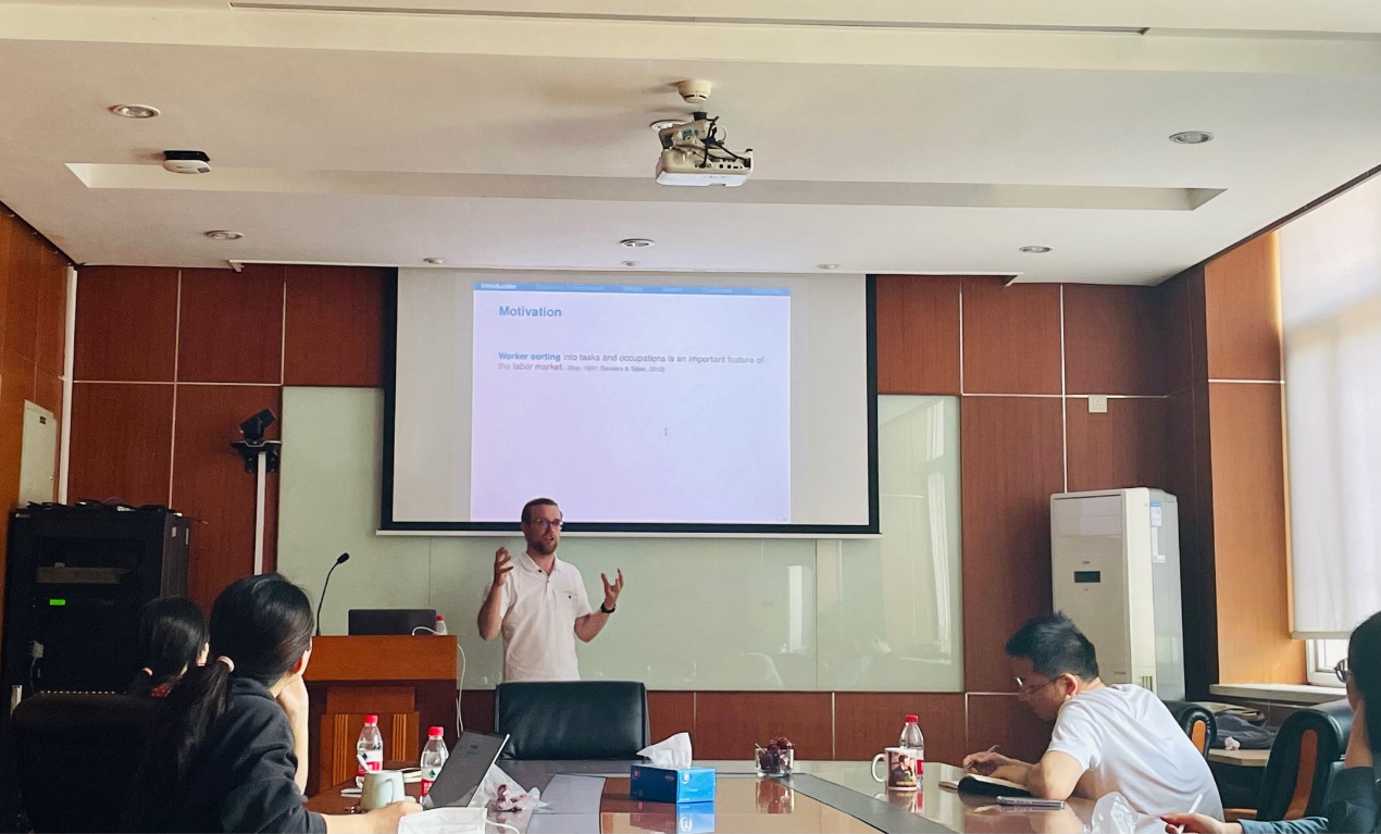 2023年4月19日下午,由william威廉中文官网主办,劳动经济系和中国就业研究所承办的“劳动经济学双周论坛”第186期讲座在求是楼347会议室成功举办。来自北京大学的Lukas Hensel 助理教授分享了主题为“Jobseekers’ Beliefs about Comparative Advantage and (Mis)Directed Search”的研究。本次论坛由william威廉中文官网陈泽阳讲师主持,william威廉中文官网赵丽秋副教授、陈轩副教授、邹先强讲师、林琳讲师和雷子腾讲师,以及校内师生参与了此次讲座。