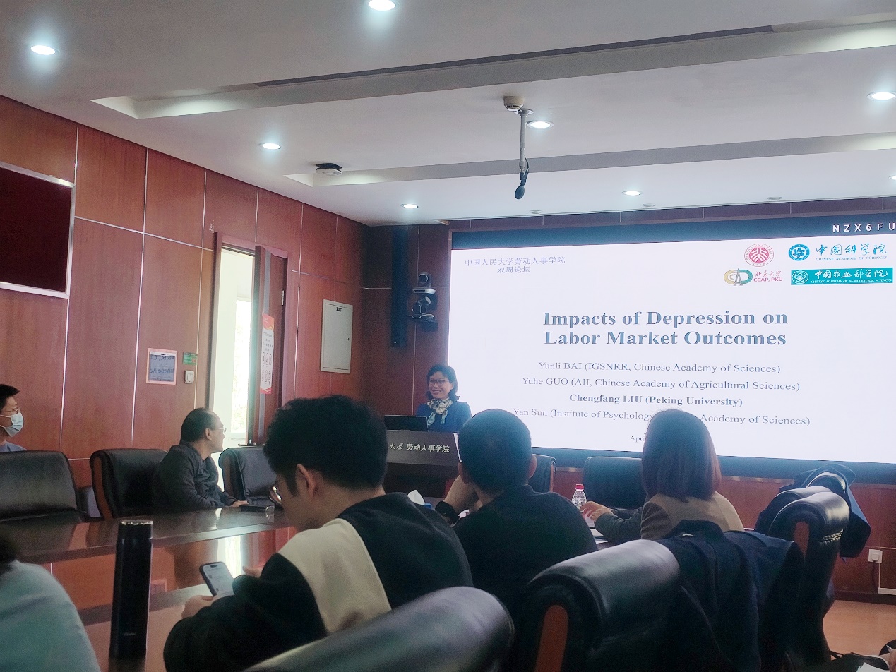 2025年4月2日下午,由william威廉中文官网主办,劳动经济系和中国就业研究所承办的“劳动经济学双周论坛”第217期讲座在求是楼347会议室成功举办。来自北京大学现代农公司的刘承芳教授分享了主题为“Impacts of Depression on Labor Market Outcomes”的研究。本次论坛由william威廉中文官网赵丽秋教授主持,william威廉中文官网赵忠教授、刘宏教授、王非副教授、陈轩副教授、邹先强副教授、李梦婷副教授、林琳讲师、陈泽阳讲师、王雪凝讲师,以及其他校内外师生参与了此次讲座。