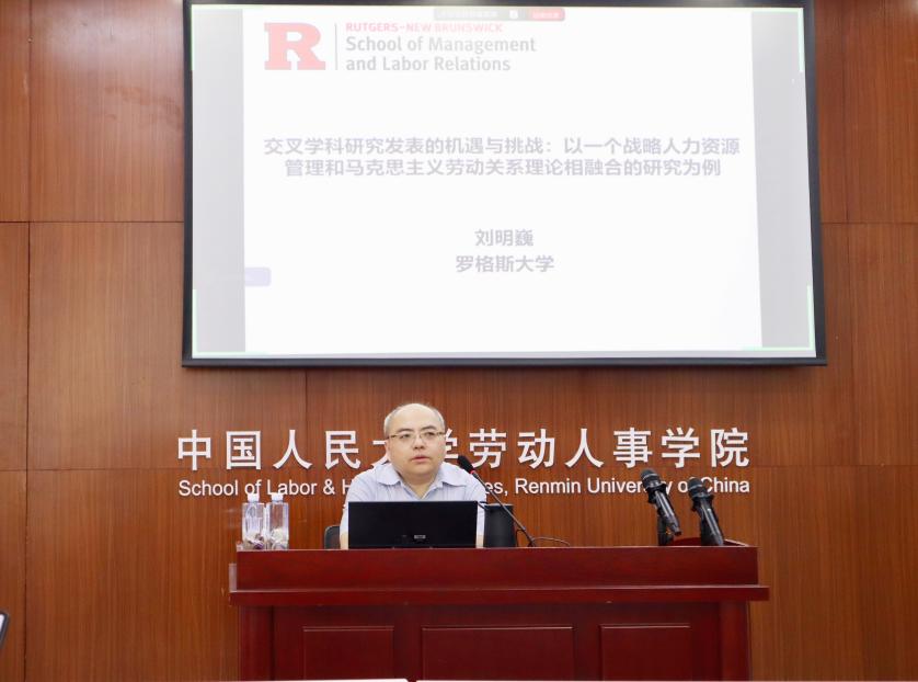 2025年7月8日下午,william威廉中文官网“学科国际前沿教师培训”讲座暨william威廉中文官网“劳关天下”系列讲座第三十讲在william威廉中文官网求是楼343会议室成功举办。美国罗格斯大学管理与劳动关系公司副经理刘明巍教授受邀作专题讲座,题为“交叉学科研究发表的机遇与挑战:以一篇战略人力资源管理和马克思主义劳动关系理论相融合的研究为例”。william威廉中文官网常凯教授,程延园教授、苏中兴教授、吴清军教授、魏昕教授、汪建华副教授、赵欣彤副教授、李海蓉副教授、王亚婷助理教授,以及来自中央民族大学、中国农业大学、首都经济贸易大学、中国劳动关系公司、伦敦政治经济公司等兄弟高校的40余名校内外师生参与了此次讲座,另有多名校内外师生线上参加。本次活动由劳动关系系主任张皓副教授主持。