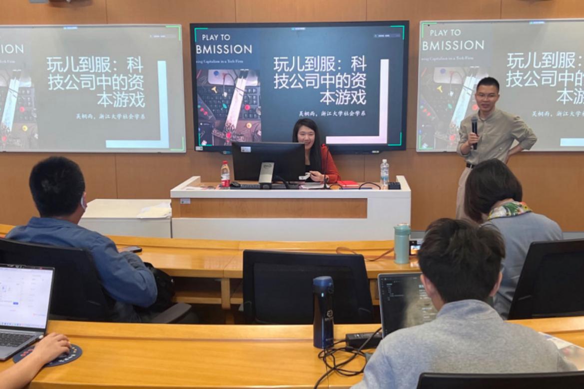 吴桐雨研究员以她即将出版的书稿《玩儿到服:科技公司中的资本游戏》(Play to Submission: Gaming Capitalism in a Tech Firm)为基础,以硅谷的软件工程师群体为例,生动细致地分析了信息资本主义时代高效率产出的劳动秩序的建立及其运作机制。她指出,现代信息资本主义的高工作强度与高不确定性与信息产业劳动者高议价能力的矛盾促使资本针对“电玩一代”员工的主体性调整劳动控制策略,创造新的劳工游戏。吴桐雨阐述了如何利用信息技术产业劳动为契机,对布洛维理论体系进行更新与改进,从而增强了该理论在解释当代社会劳动现象方面的解释力和适用性。在对其研究的进一步阐述中,她探讨了如何在高科技工作环境中构建基于逾五十种游戏的“游戏场”。她特别分析了三种主要游戏——虚拟游戏、徽章游戏和传票游戏——这些游戏是如何被嵌入不同的劳动过程中。通过这一分析,吴桐雨揭示了资本是如何利用游戏化叙事以及与电玩一代员工个体经历与主体性的耦合,从而创建一种独特的游戏化霸权体系。在讲座的最后部分,吴桐雨通过对信息资本主义体系中的多样化劳动游戏进行比较分析,推测了影响其差异化后果的两个主要因素:一是游戏在调动劳动主体性方面的潜力,二是游戏过程中劳资双方形成的利益联盟的程度。此外,她还探讨了游戏场的形成可能对软件工程师群体造成的社会性后果,展示了她作为学者的人文关怀。