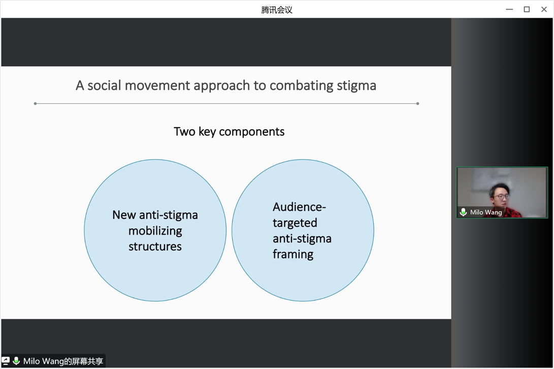本次讲座围绕着如何利用社交媒体对抗社会污名这一主题展开。首先,汪少卿老师介绍了污名化的文献基础和最新研究进展。在社交媒体时代,传统的应对污名化负面影响的措施可能不再和以往一样有效,但同时也为应对污名化的团体提供了新的解决方案。汪少卿老师提出了基于两种核心要素来应对污名化的社会运动方法,包括新的反污名化动员结构和针对受众的反污名化框架。新的反污名化结构包括建立数字化的反污名化社会组织、应用数字化手段协助线下反污名化活动和促进线上的反污名化活动。而针对受众的反污名化框架则旨在针对不同人群采取不同的应对措施,针对被污名化群体、潜在的盟友和施加污名的群体应该采用不一样的策略,借此来团结更广泛的群体从而应对污名化的负面影响。