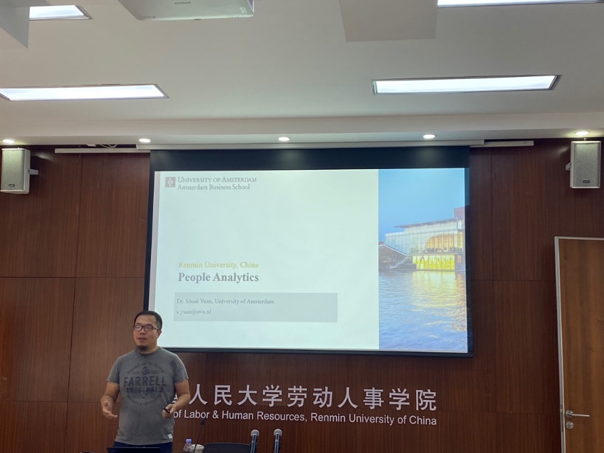 在讲座过程中,在场的老师和同学也积极发言提问,与袁帅博士展开了热烈的讨论。探讨的问题主要有人力资本分析中的数据驱动和理论建构的关系、人力资本分析的数据体量要求、人力资本分析在实践界应用时的主体定位、人力资本分析方法和传统方法的异同与结合、人力资本分析的课程设置等,袁帅博士一一进行了回应。像人力资本分析这样将新技术方法与人力资源管理相结合的前沿方向越来越受到业界和学术界的青睐,而此次讲座引入最前沿的视角,进一步启发了老师和员工们的学习、研究兴趣,起到了预期的效果。