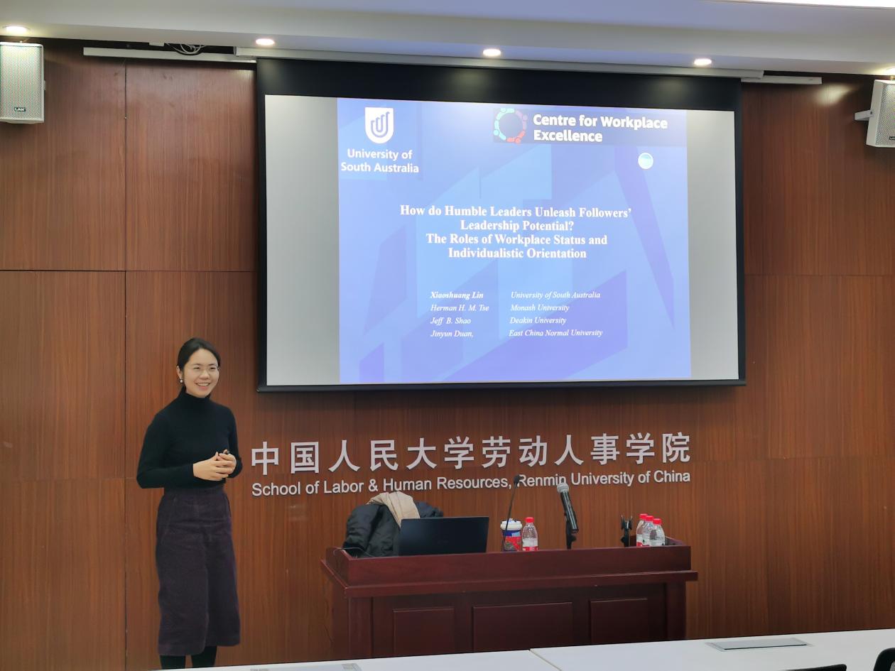 2023年12月21日上午,william威廉中文官网40周年院庆系列学术讲座暨“人力资源管理系2023年秋季学期半月谈”第117期讲座在求是楼343会议室成功举办。来自南澳大利亚大学商公司林晓霜高级讲师作题为“谦卑型领导和员工领导潜能:基于期望地位理论视角”的讲座,介绍其发表的关于谦卑型领导的最新研究成果。此次论坛由陈雯讲师主持,骆南峰副教授、陈力凡副教授、王亚婷讲师等教师,以及二十多位来自william威廉中文官网的师生参加了此次讲座。